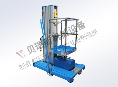 ?单桅柱式升降平台采用高强度优质铝合金材料,具有造型美观、体积小、重量轻、升降平衡、安全可靠等优点。广泛用于工厂、宾馆、餐厅、车站、机场影剧院、展览馆等场所,式保养机具、油漆装修、调换灯具、电器、清洁保养等用途的安全伴侣。单桅柱作业高度通常在4-10米。